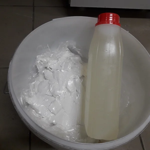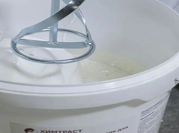 Смешать компоненты А и Б в пропорции 9:1 до однородной массы с помощью электрического миксера. Подробнее о пропорциях смешивания читайте в описании продукта.
