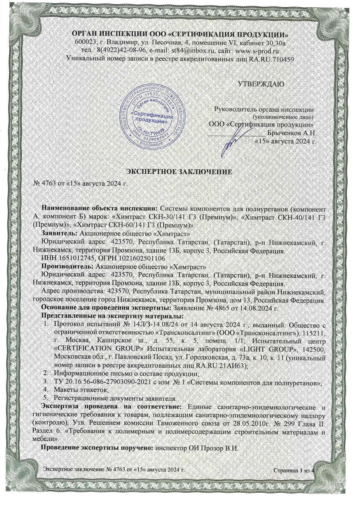 Сертификат соответствия на "Химтраст Краску Пенополиуретан"